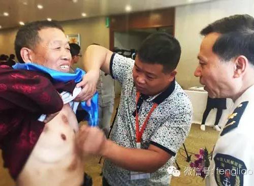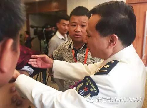 图:海军总医院呼吸科冯华松主任在蜂疗分会成立大会现场与曾伟交流其父蜂疗抗癌医案