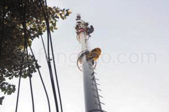 维修淮阳县豆门乡张庄村附近的一处电信信号塔时,中国电信淮阳分公司一位工作人员被马蜂蜇伤,为躲避马蜂而爬到塔顶。
