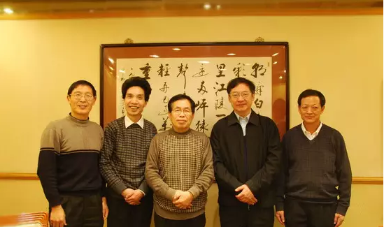 图:江董事长与《中国企业报》总编张来民(左一)、《中华新闻报》原副主编王迈(中)、新华社副总编刘江(右二)、《西部时报》副总编张整顿合影。