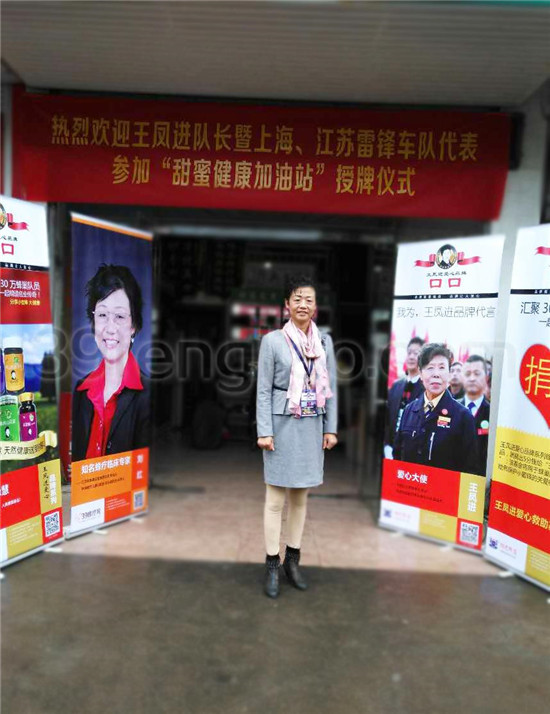 参加江苏如皋市“王凤进爱心品牌·甜蜜健康加油站”挂牌仪式的领导有:中国雷锋车队总队长王凤进大姐、蜂疗专家刘红老师、中国雷锋车队联谊会副秘书长吕春生、海安雷锋车队队长王玉宏等嘉宾们一起在现场见证了这一激动人心的时刻。