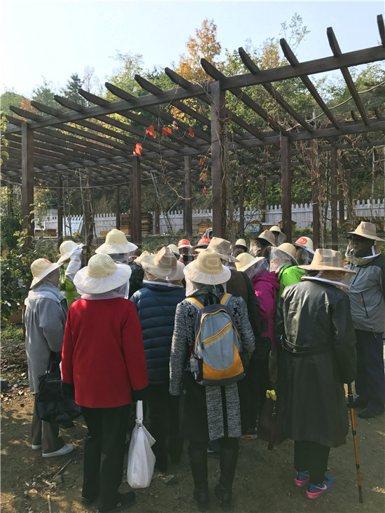 蜂疗专家刘红老师在密云蜜蜂大世界为民革党员们讲解蜂疗