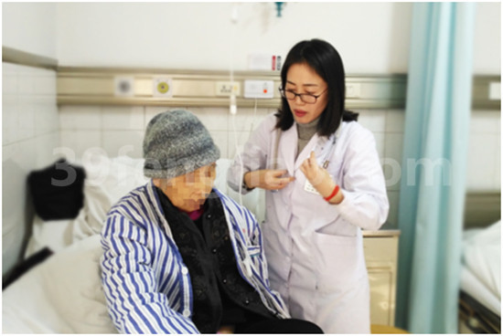 图为:张燕主任在病房细心为老人患者检查身体,从她对老人关切问候的一个眼神、一声安慰、一点回应、一丝温情,就已经化开病人的心结,点燃病人和家属的希望。当39蜂疗网记者问到她“医者仁心”内含何意?她回答到 “医生不仅要尽心尽力治病救人,还要从情感上关怀他们,赢得他们的信任,构建起和谐的医疗关系,更有利于患者的康复”。