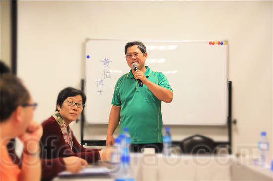 台湾亚太蜂针研究会辅导会长陈清一先生在学习交流会现场与各位蜂疗专家进行学术交流