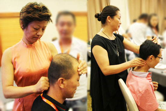 39蜂疗网培训班特聘讲师 刘红老师、刘太芬老师,给学员讲解操作手法并示范