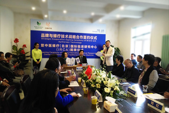 在授牌仪式现场,39蜂疗网的张总编辑表示,中医药(含民族医药)强调整体把握健康状态,注重个体化,突出治未病,临床疗效确切,治疗方式灵活,养生保健作用突出,是我国独具特色的健康服务资源。这次合作成立的中医蜂疗(北京)临床研究中心(简称IRCA),将更好的把中医蜂疗传统法带到国际康复疗法中,形成了一套以传统康复诊疗为主,辅以现代康复诊疗的综合医疗体系,对中风、偏瘫、风湿、骨关节病、颈腰椎病、强直性脊椎炎、免疫系统疾病及肿瘤等常见病疑难病的康复治疗,提到前所未有的高度! 远远优于单一的现代康复疗法。IRCA的成立,将为世界追求健康的人们带去更便捷,更专业的绿色康复服务。这将是中医蜂疗(北京)国际临床研究中心在国际医疗领域迈出坚实的第一步。