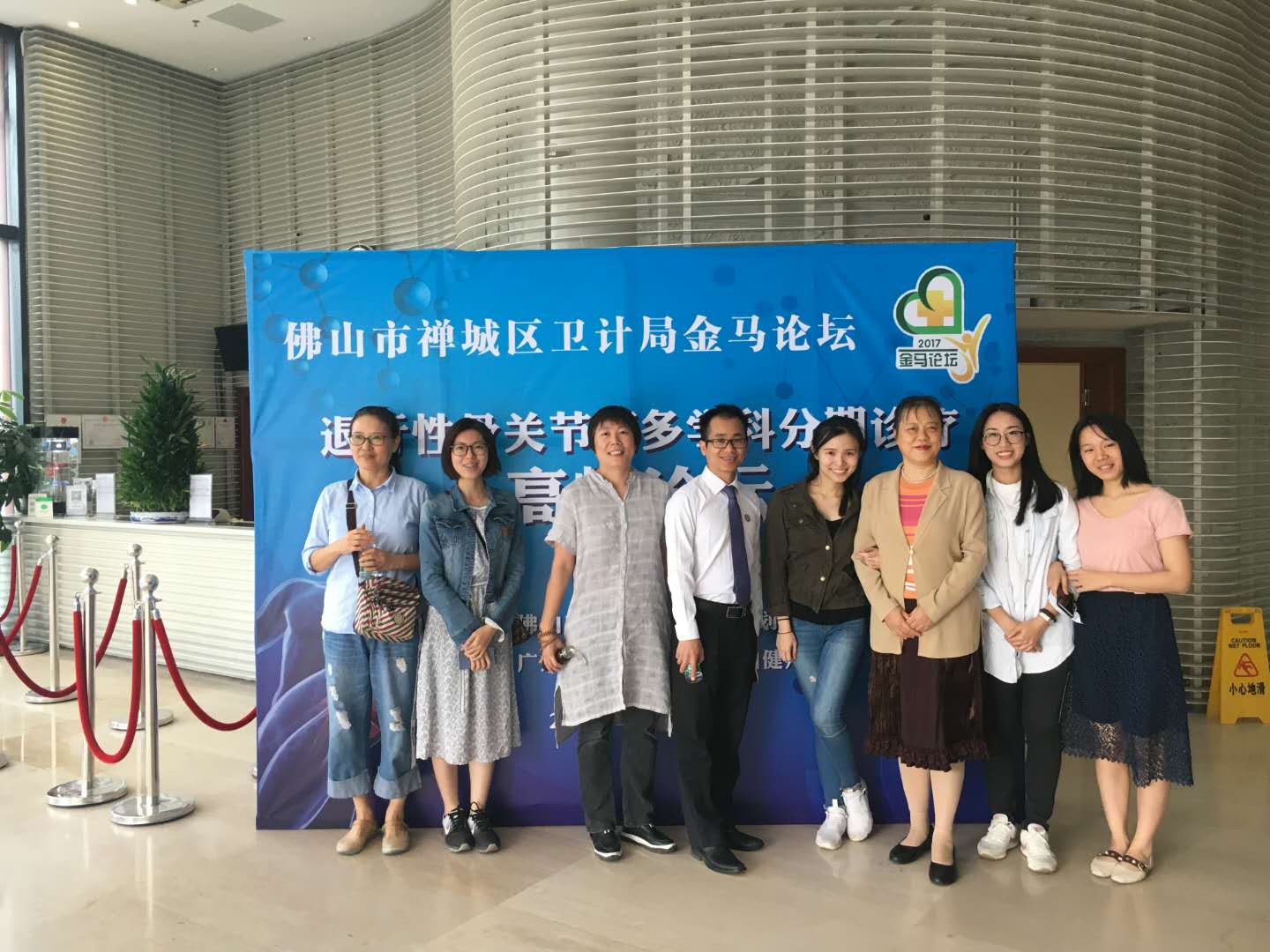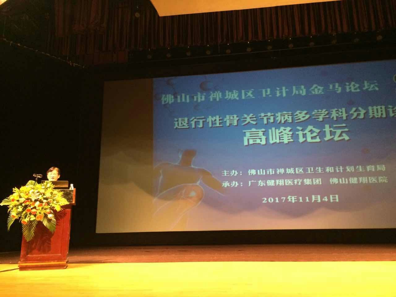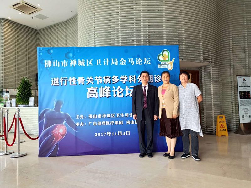 2017年11月4日,由佛山市禅城区卫生和计划生育局主办,广东省健翔医疗集团,佛山健翔医院承办的退行性骨关节病多学科分期诊疗高峰论坛在佛山举行,世界中联蜂疗专业委员会、中国民族医药学会蜂疗分会 李万瑶会长、中国民族医药学会蜂疗分会 唐纯志秘书长、中国民族医药学会蜂疗分会 常务理事 李珊云等受邀参加本次会议,李万瑶会长与唐纯志秘书长分别作了精彩的学术报告。