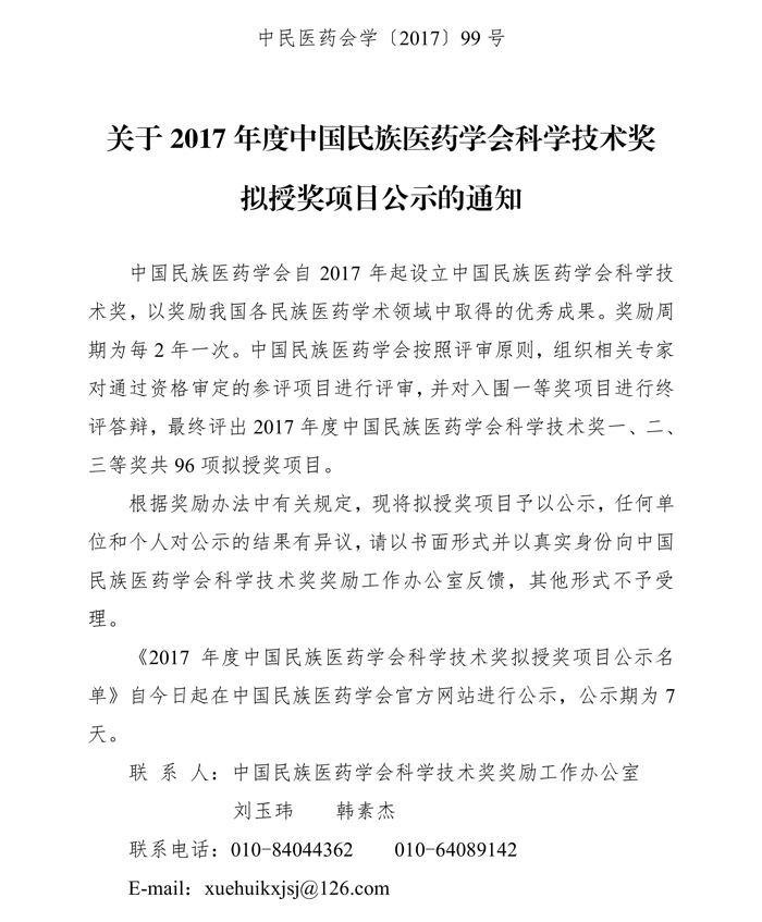 中国民族医药学会自2017年起设立中国民族医药学会科学技术奖,以奖励我国各民族医药学术领域中取得的优秀成功,奖励周期为每2年一次,征集范围覆盖全国各省、自治区、直辖市卫生部门,中医药行业学会(协会)等。