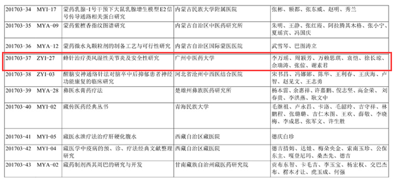 【39蜂疗网 讯】2017年11月,中国民族医药学会2017年度科学技术奖评选活动结果公告发布。从评选公告发布之日开始,经过为期9个月的时间,在众多递交项目中,最终评选出2017年度中国民族医药学会科学技术奖一、二、三等奖共96项授奖项目。中国民族医药学会蜂疗分会李万瑶会长领衔,广州中医药大学团队递交的项目《蜂针治疗类风湿性关节炎及安全性研究》,荣获此次科学技术奖三等奖。