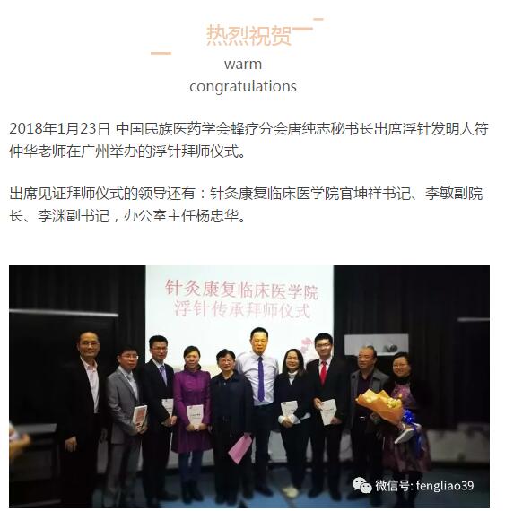中国民族医药学会蜂疗分会唐纯志秘书长出席浮针发明人拜师仪式