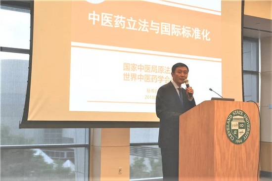 世界中医药联合会副主席兼秘书长桑滨生《中医药立法与国际标准化》的主题报告
