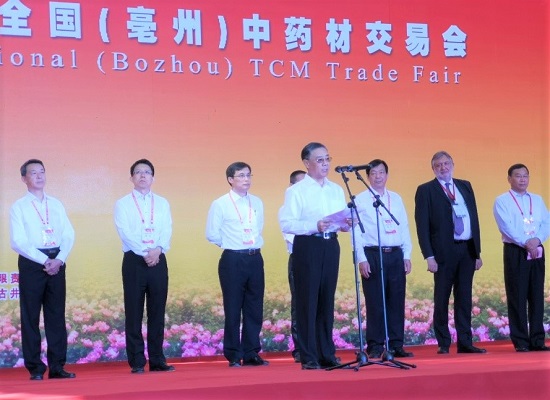 2018年9月9日,2018年国际(亳州)中医药博览会暨第34届全国(亳州)中药材交易会正式开幕,国家中医药管理局副局长、世界中医药学会联合会主席马建中出席并宣布开幕。国家中医药管理局第二届中医药改革发展专家咨询委员会顾问洪虎,中华全国供销社总社监事会主任汤益诚,中国农产品流通经纪人协会会长于培顺,中国中药协会会长房书亭,中国国际贸易促进委员会投资促进部副部长张亮,市委书记汪一光,市人大常委会主任王玉玺,市政协主席汤涌,市委副书记方晓利等出席开幕式。市长杜延安主持开幕式。