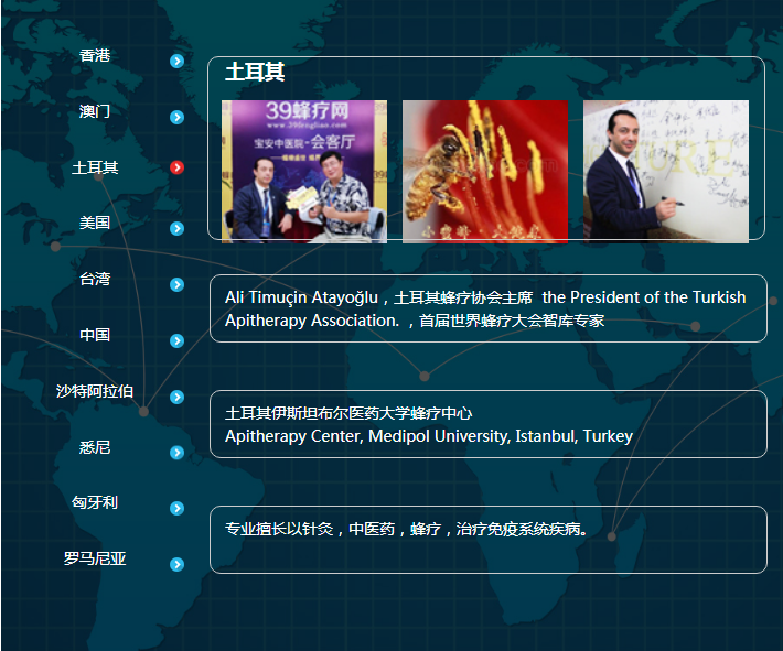 Ali Timuçin Atayoğlu:土耳其蜂疗协会主席,the President of the Turkish Apitherapy Association.首届世界蜂疗大会联合发起人,土耳其伊斯坦布尔医药大学蜂疗中心Apitherapy Center, Medipol University, Istanbul, Turkey