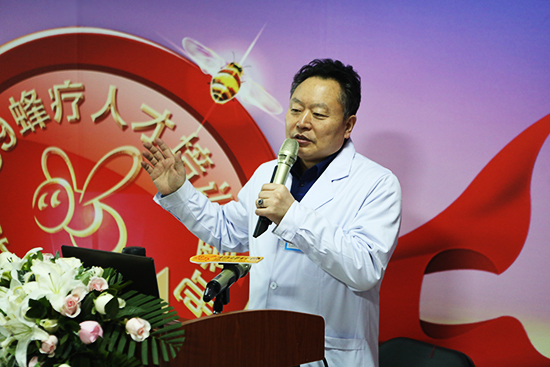 接着,本次培训班班长董敬领讲话,他对39蜂疗集训班的精心组织安排和全体学员的支持配合表示了感谢,并勉励大家要树立终身学习的目标,学思行相统一,积极将学习成果转化为生产力,让中医蜂疗造福更多的疾患。