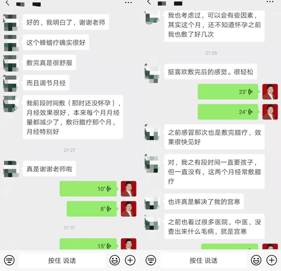 曾伟老师手记:藏药蜂蜡采用中医“温热疗法”,达到温、润、补、调的肾部保养功效,从根本上改善寒湿体质,祛湿散寒,活血化瘀,对妇科疾病疗效甚佳,此病例并非藏药蜂蜡疗法成功调理女性不孕的个例,自藏药蜂蜡上市9个月来,已有3例不孕症患者蜡疗后怀孕的报告,除本病例的35岁的美眉以外,还分别有40岁和44岁两例……藏药蜂蜡的调理价值随着个体病例成功数量的增加和我们的深入研究会有更加喜人的体现。