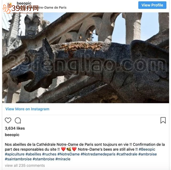 巴黎圣母院突来的大火令人心碎,而在大火中却能逃出生天的蜜蜂们则引发人们好奇。