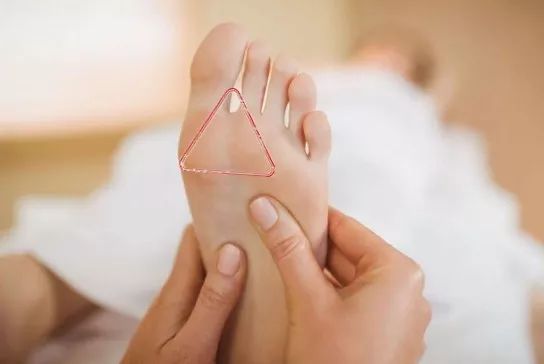 脚上的三角区是指以大拇指和前脚掌之间区域。