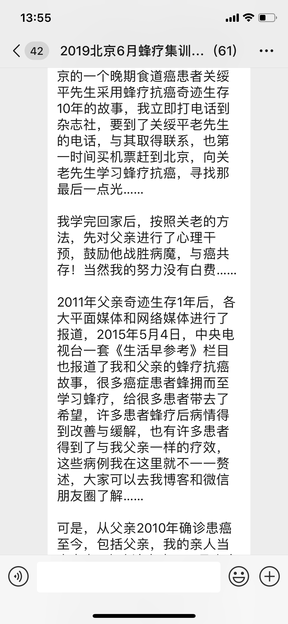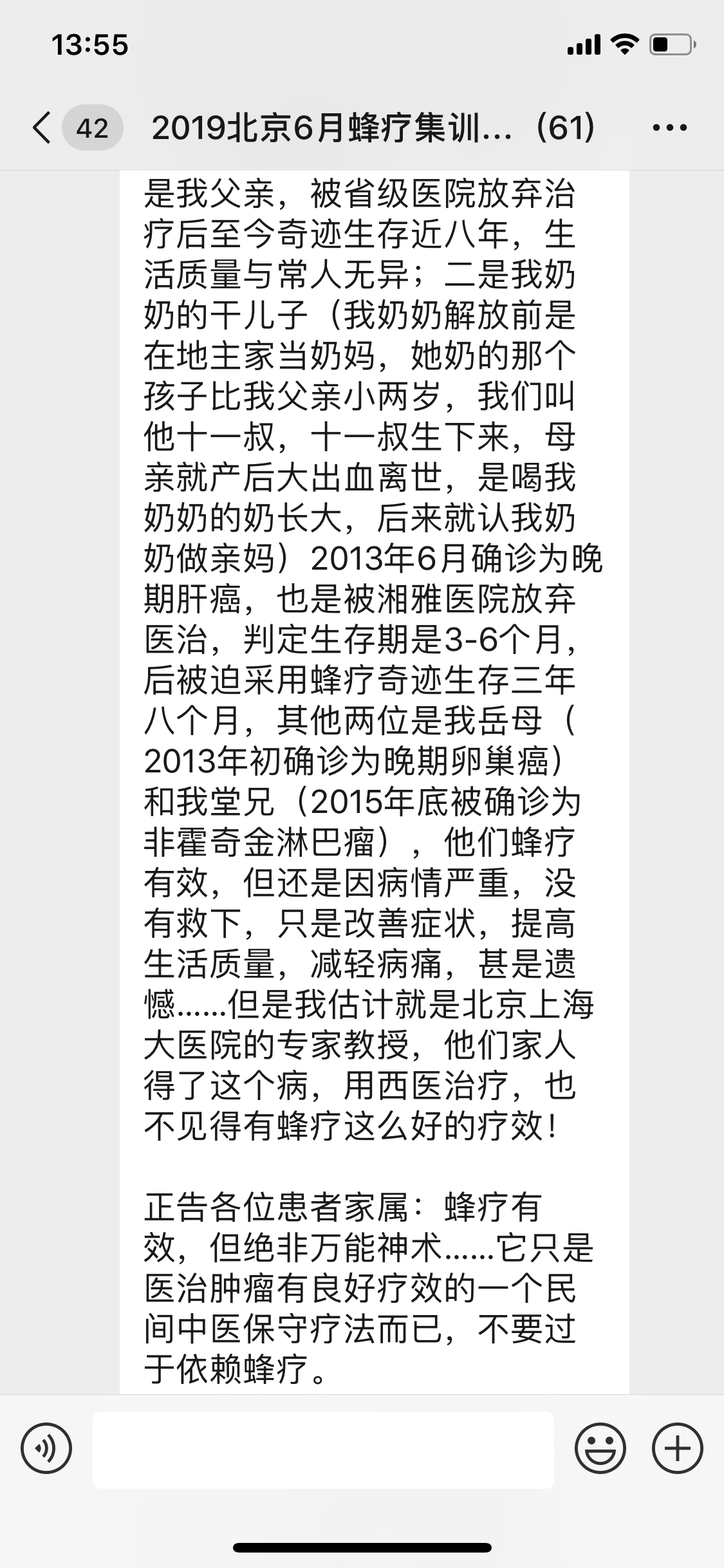正告各位患者家属:蜂疗有效,但绝非万能神术……它只是医治肿瘤有良好疗效的一个民间中医保守疗法而已,不要过于依赖蜂疗。