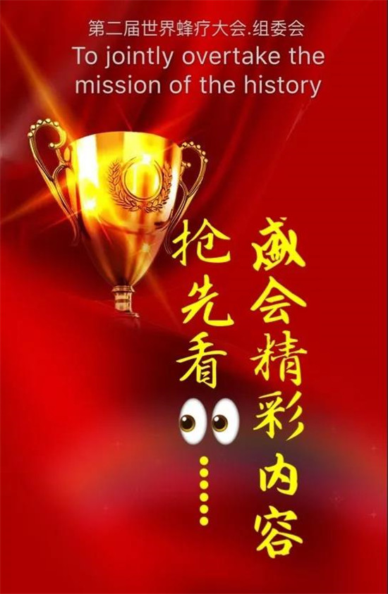以上活动包含但不包括第二届世界蜂疗大会的全部环节,第二届世界蜂疗大会组委会正在紧锣密鼓的准备中,更多精彩陆续发布,敬请关注!