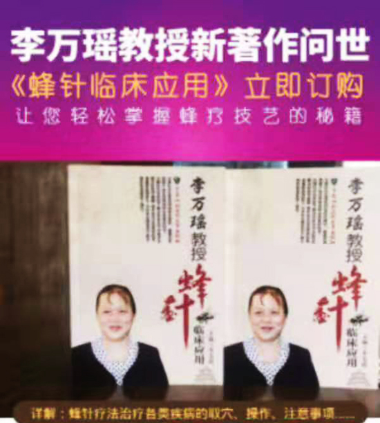 实际上李万瑶教授本身就是广州中医药大学针灸康复临床医学院的教授,在针灸领域有着极高的声望。针灸与蜂疗有着“异曲同工之妙”,只不过蜂疗优于针灸的点在于蜂针自带的优越营养成分。立足自身丰厚针灸知识的李万瑶教授向蜂疗领域研究开去。她参与完成过国家卫生部课题:蜂针对类风湿关节炎动物模型细胞因子的影响研究,此外也主持完成了广东省不少关于蜂针的课题,并因此获得了广州市科学技术进步奖。