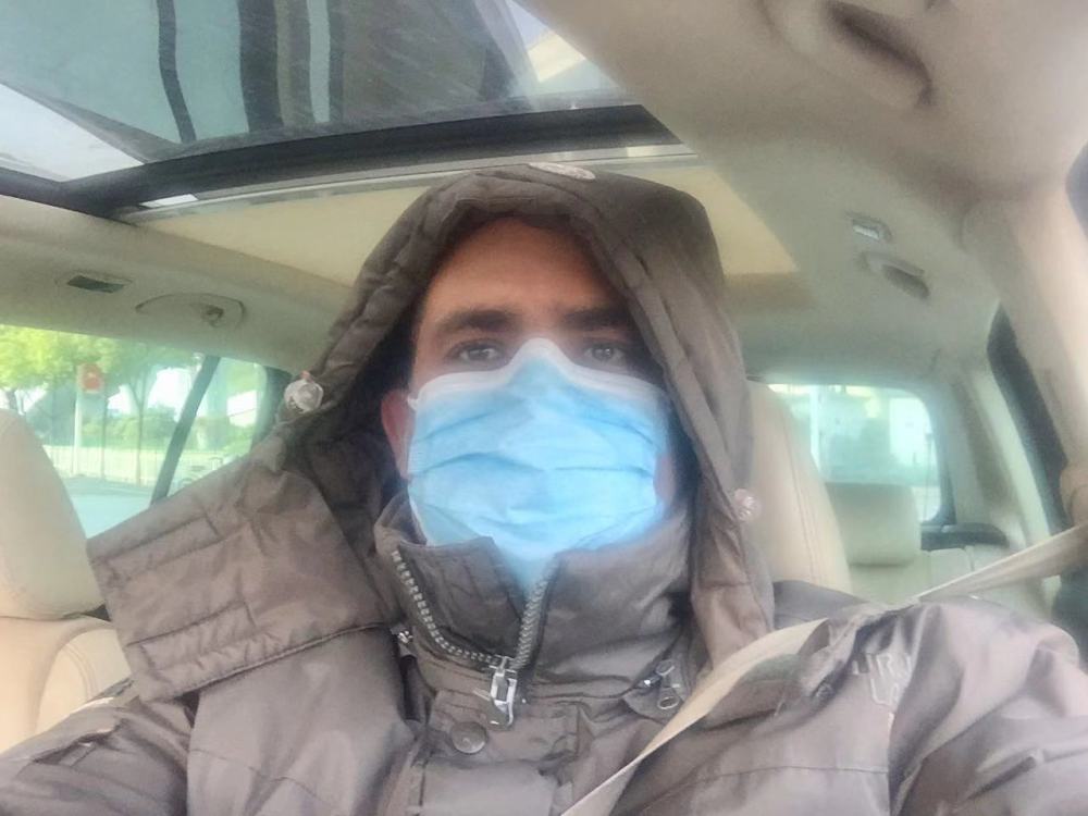 瓦阿里做好防护准备开车出行。(受访者供图)