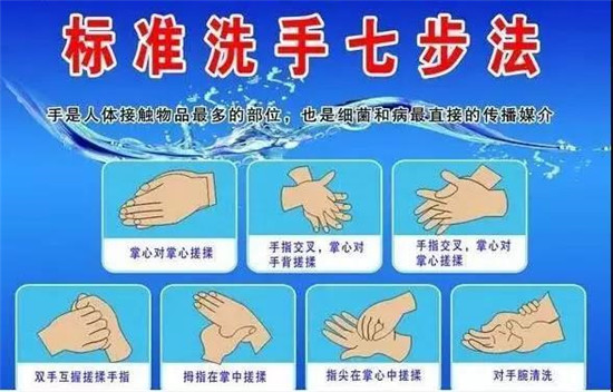 七步洗手法全过程要认真揉搓双手15秒以上。另外,在日常生活中,洗手卫生要用流动着的水,而且只要是接触到可能污染的场所,如医院、公共汽车等,那么到家洗手尽量要坚持一分钟以上,洗净各个角落。