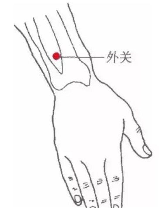 外关穴位于人体的前臂背侧,在腕背横纹上方两寸左右的位置。