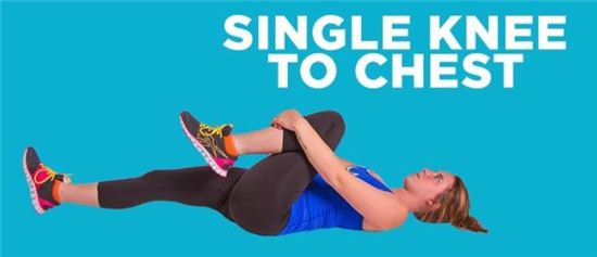 1.抱膝伸展(单/双腿)。用手抱住另一侧膝关节向上提起至后侧有拉伸感,保持8-10秒然后慢慢放下来,重复6-8次。