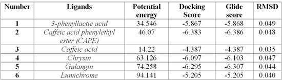 蜂蜜和蜂胶里面存在大量具有一定生理活性的黄酮化合物,分子对接的结果表明这些化合物有望成为针对病毒主要蛋白的抗病毒药物先导物。天然产物结构新颖,具有广泛的生物活性,尤其是大多数天然产物几乎没有毒害副作用,是新药研发宝贵的源泉!