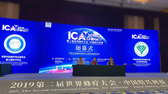 第二届世界蜂疗大会在中国.绍兴柯桥圆满闭幕,李万瑶会长、张卿隆秘书长、杞锦政副会长做了本届大会的闭幕总结