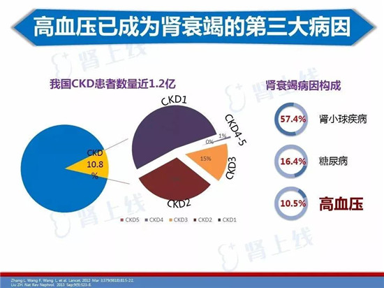 据统计,有15%高血压病人最终发展为尿毒症,这是一个非常巨大的数字。美国公布导致尿毒症的原因,高血压性肾脏病列第二位,占23%,仅次于糖尿病肾病(43.2%);而在中国,高血压性肾脏病位居肾小球肾炎和糖尿病肾病之后,占尿毒症的第三位。
