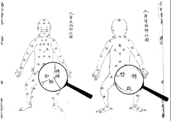 这是一个总体的原则,实际的例子不是很多见,但是一旦遇到了,就可以用来做作分析。就比如“髀”和“脾”,出现在《伤科补要》中的“脾枢”和《伤科汇纂》图注里面的“脾”和“脾枢”,绝对不是写错字那么简单。