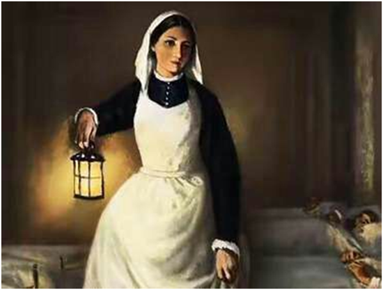 在克里米亚战争中,她手持油灯巡视英军设在伊斯坦布尔的军医院病房里,无微不至地护理治疗伤兵们。
