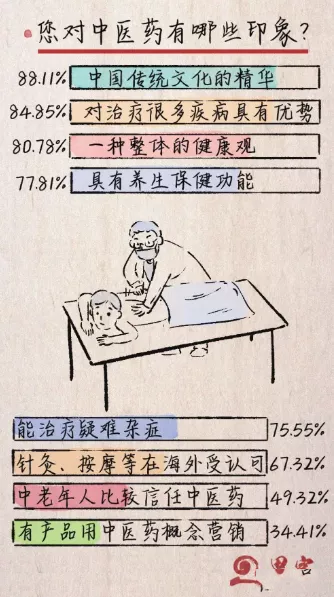 疫情趋于稳定后,新华网调查了近10万人对中医的态度和看法,令人振奋的结论是:绝大多数受访者对中医药持正面、积极态度。超八成受访者认为中医药是中国传统文化的精华、在治疗许多疾病上有优势、是一种整体的健康观。