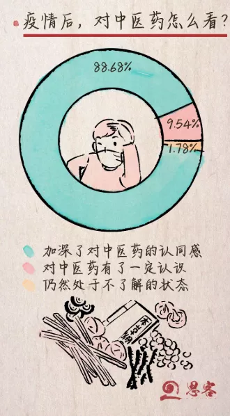 在被问到,疫情之后对中医的态度如何时,88.68%受访群众则表示:在疫情期间,加深了对中医药的认同感,将继续支持中医药的发展。