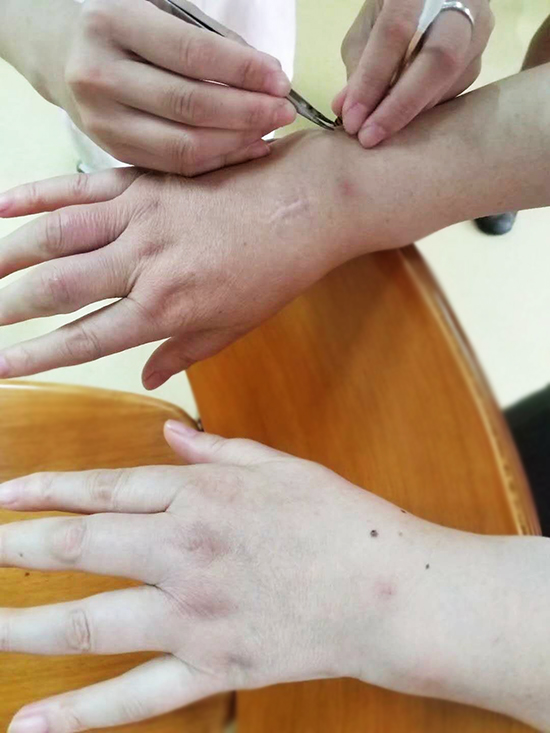 当小编走进柴主任的诊室时,只看见几十位患者已经将他围观,只见他耐心细语的为每一位患者诊断治疗,从诊断到蜂疗忙乎得不停歇。好不容易小编从人群中挤到柴主任的诊疗床边,看着他一边给患者细心的做完蜂针后又做蜂毒蜡疗。患者个个都是笑容满面,整个蜂疗诊室其乐融融。
