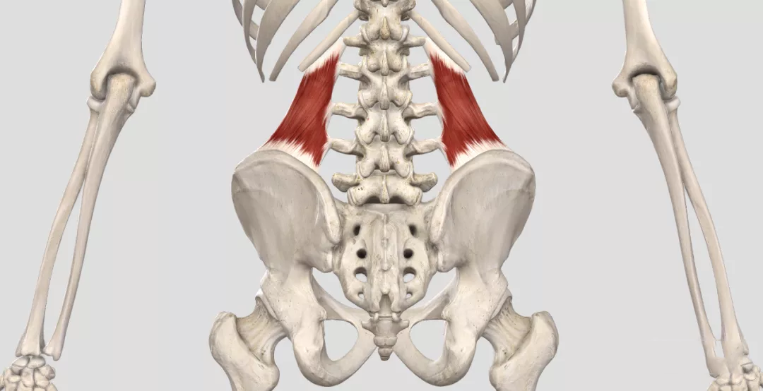 腰椎稳定、腰椎侧屈、腰部伸展、参与髋部运动、被动呼气、骨盆固定时躯干向同侧旋转。在解剖学上,腰方肌下端附着于髂腰韧带和髂嵴,上端附着于第12肋和第1~4腰椎横突的尖端。很多朋友对于腰方肌的认识可能是这样的。实际上腰方肌的准确模样是由三束肌纤维共同组成,更像是这个样子的。