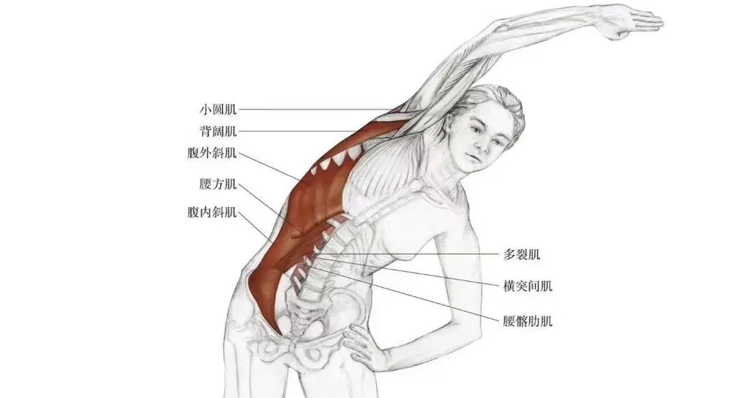 以上几个动作都很直观,很简单,似乎没有什么要强调的,大家看着做就可以,小编不多说了。但是腰方肌毕竟是一个深层的肌肉,外面还包裹着很多重叠轨迹,重叠功能的肌肉,所以一时半会牵拉不到也是很正常的。小编建议在牵拉腰方肌之前,先做好周围其他肌肉的放松,泡沫轴结合牵拉效果最好。