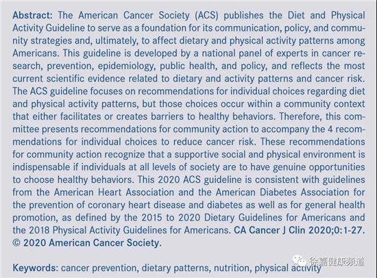 2020年6月9日,美国癌症协会发布了个人防癌生活方式指南。
