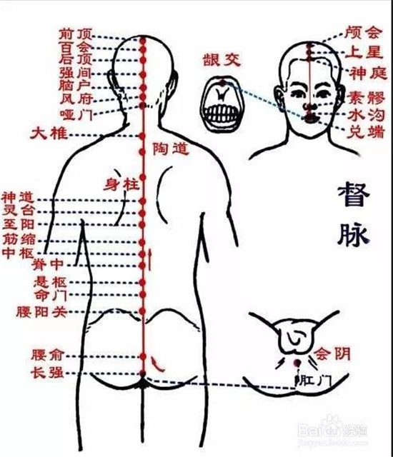 后背有两条大的经络,督脉总管着一身的阳气,古人称督脉为“阳脉之海”,统领全身之阳经,而且主全身之阳气,在很大程度上决定了人的寿命;