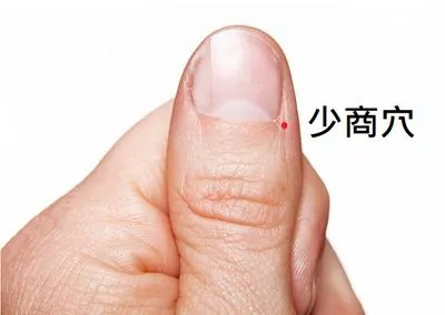 4、呃逆:可用拇指和食指緊壓少商穴 (位於拇指橈側指甲角旁0.1寸處),至有酸痛感為宜,持續半分鐘到1分鐘,呃逆就會停止。