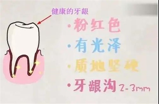 健康的牙龈:颜色是粉红色,边缘应该贴合牙面,质地坚韧而富有弹性。