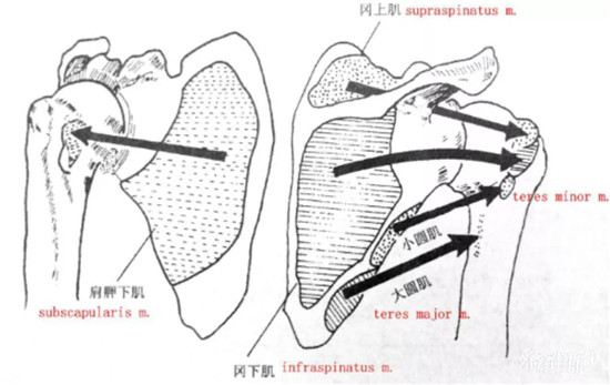 4.肩袖的前部分为肩胛下肌,走行与肩胛骨的前面,止于肱骨小结节。