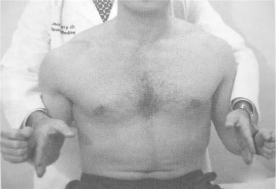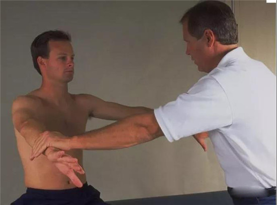 内旋使二头肌腱到达喙肩弓内侧,该检查基本可以排除二头肌腱与喙肩弓撞击引起的疼痛的干扰。