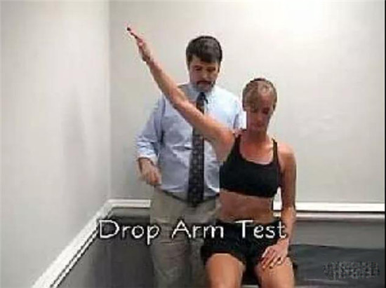 患者肘关节屈曲90°,肩关节在肩胛骨平面外展20°,检查者一手固定肘关节,另一手使肩关节保持最大外旋,然后放松嘱患者自行保持最大外旋,外旋度数逐渐减少为阳性,提示冈下肌、小圆肌损伤。