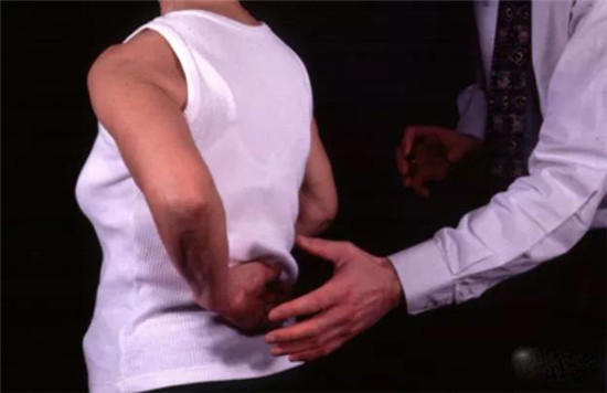 将患者的手放在背后且向后离开身体,撤去外力后无法维持此位置而贴住躯干,提示肩胛下肌损伤。