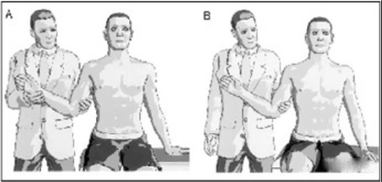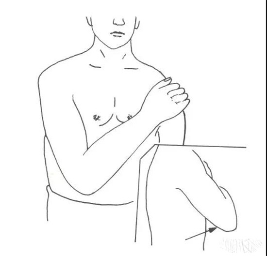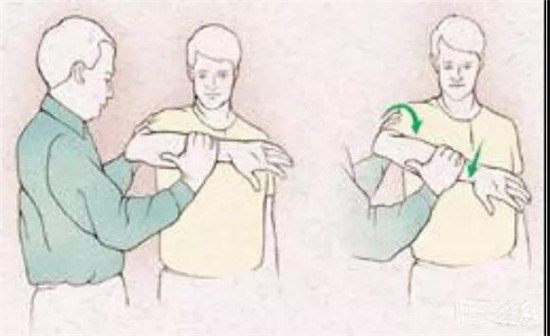 杜加征(Dugas sign):又称搭肩试验。患肢肘关节屈曲,手放在对侧肩关节前方,如肘关节不能与胸壁贴紧为阳性, 提示肩关节脱位。