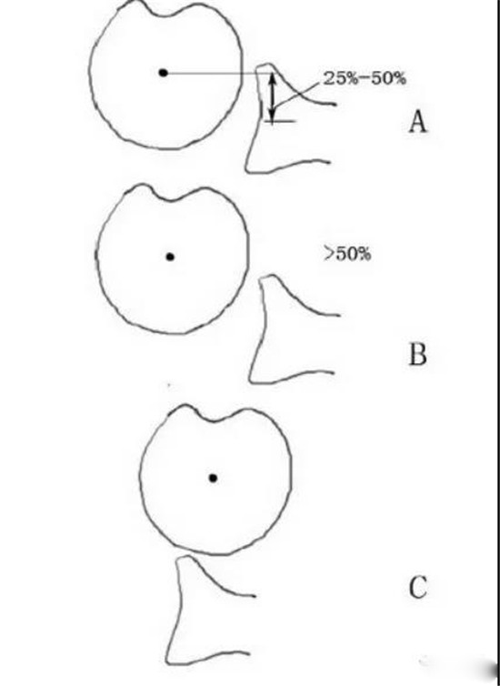 Hawkins评分:1级肱骨头前后移位并骑跨于盂唇缘,不超过25%-50%;2级肱骨头有脱位,但可自己恢复,超过50%;3级肱骨头脱位,不能自行恢复,完全脱于关节盂外。