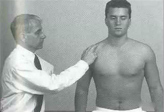 患者将手置于腹部,手背向前,屈肘90度,注意肘关节不要贴近身体。检查者手向前拉,嘱患者抗阻力做压腹部动作,可能因姿势类似拿破仑的典型姿态而得名。两侧对比,阳性者力量减弱,或屈腕代偿。阳性提示肩胛下肌(肩关节内旋肌)损伤。