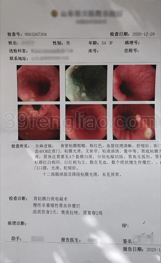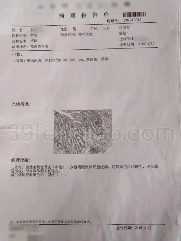 【39蜂疗网】记者 讯 大家都知道萎缩性胃炎被称作为癌前病变,风险比较大,某先生在2020年岁末康复了自己的萎缩性胃炎,老师发自内心的为他感到高兴,让我们共同祝愿他身体健康,全家幸福安康!