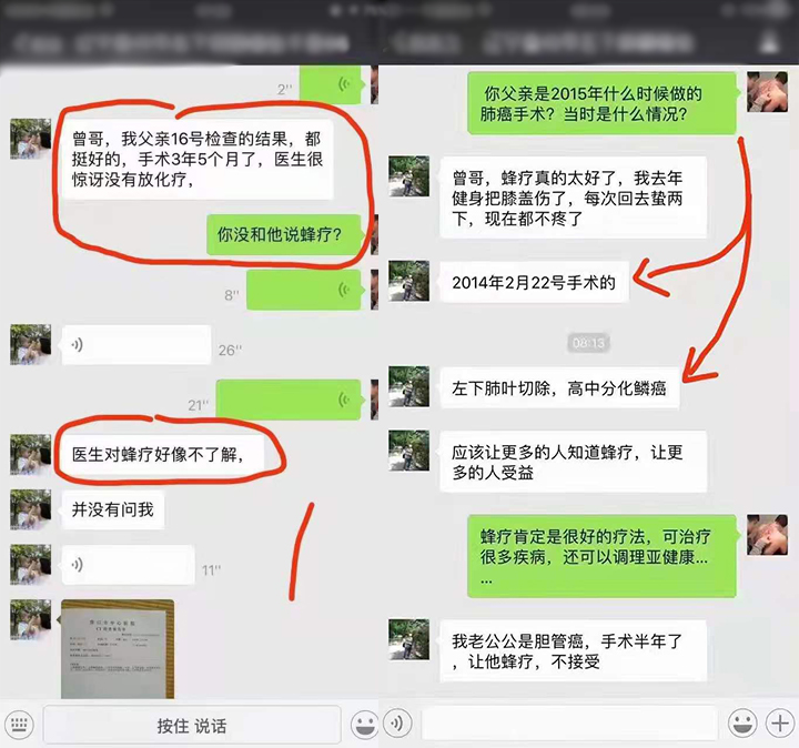 认真听取并遵从曾伟老师的建议,以蜂疗结合西医化疗,在化疗期间和化疗后均进行蜂疗,有效的缓解了化疗过程中对患者带来的副作用,达到事半功倍的效果。
